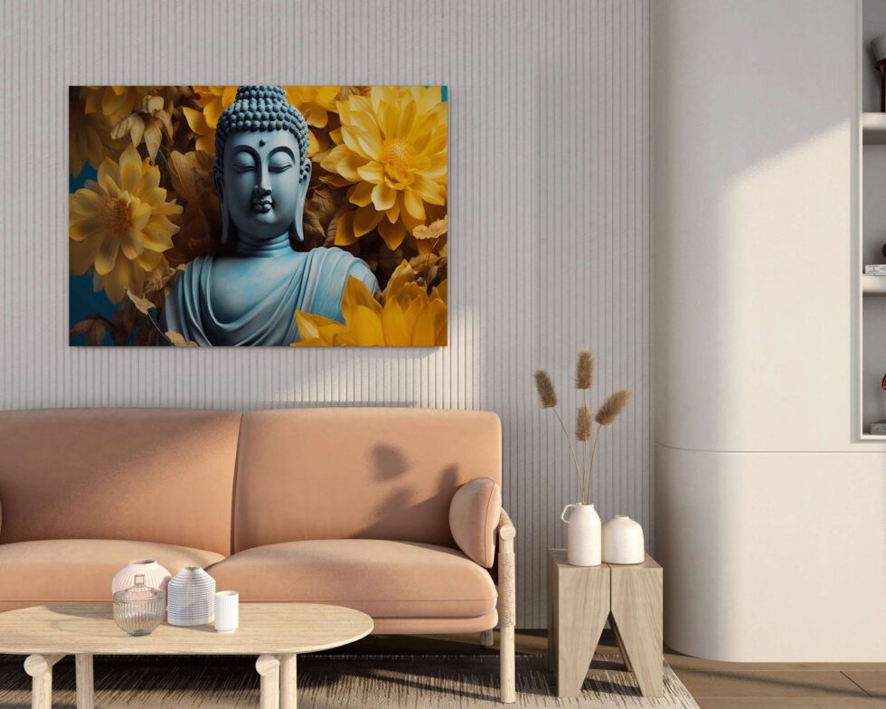 Transform your space into a sanctuary of tranquility with our exquisite Buddha wall paintings. Crafted with meticulous detail and imbued with spiritual serenity, each piece radiates peace and harmony. Elevate your home decor with these timeless artworks, perfect for creating a serene ambiance in any room. Explore our collection and invite the essence of enlightenment into your living space today The canvas is carefully stretched over a durable wooden frame, creating a gallery-quality finish that adds a touch of elegance to any room. Whether you’re looking for a Buddha framed painting for wall or a Buddha big wall painting with frame