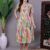 Effortlessly stylish dress with a vibrant abstract print, tie-up shoulder straps, and a chic high-low handkerchief hemline ? perfect for casual days or evening gatherings.