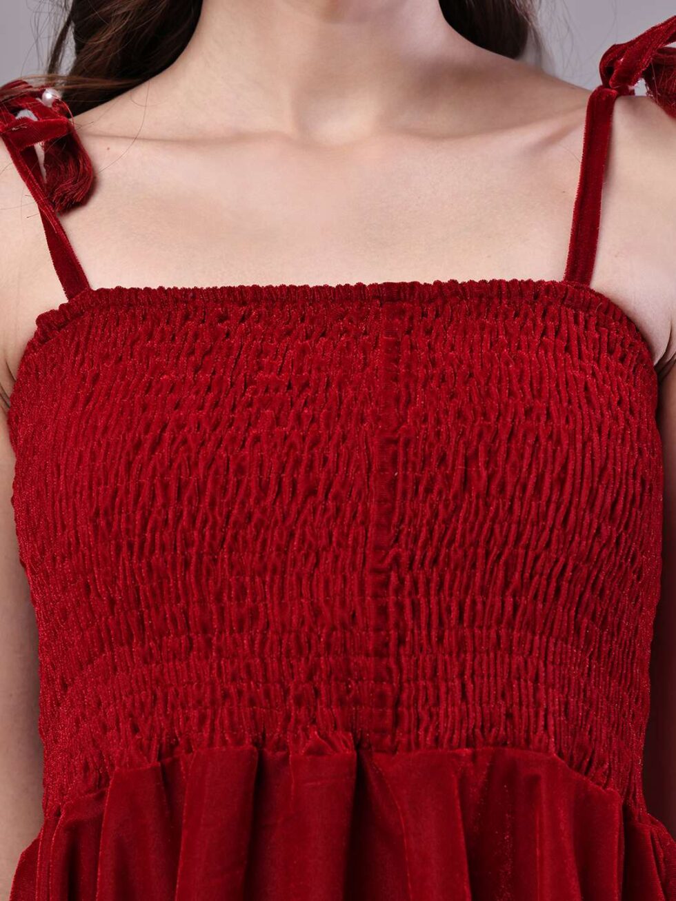 Women’s Junglee Velvet Maroon Handkerchief Hem Dress